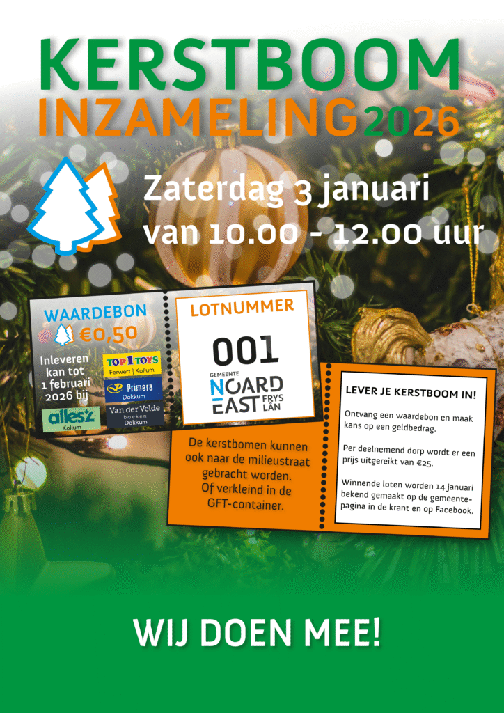 De trekking vindt plaats op 8 januari en de winnende loten worden op woensdag 14 januari bekend gemaakt op de gemeentepagina in de regionale kranten. De prijsuitreiking vindt plaats op woensdag 28 januari 2026 om 16:00 uur in de kantine van gemeentehuis Dokkum door betrokken wethouder Hanneke Jouta.